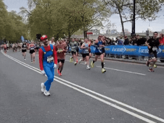 我在网上看到一个动图,主角是一个一稔马里奥衣服参预马拉松比赛的东谈主,他在比赛途中就骤然“撞墙”了,走起来是真的机械得跟僵尸雷同,拿来作为典型展示是最佳不外的了。