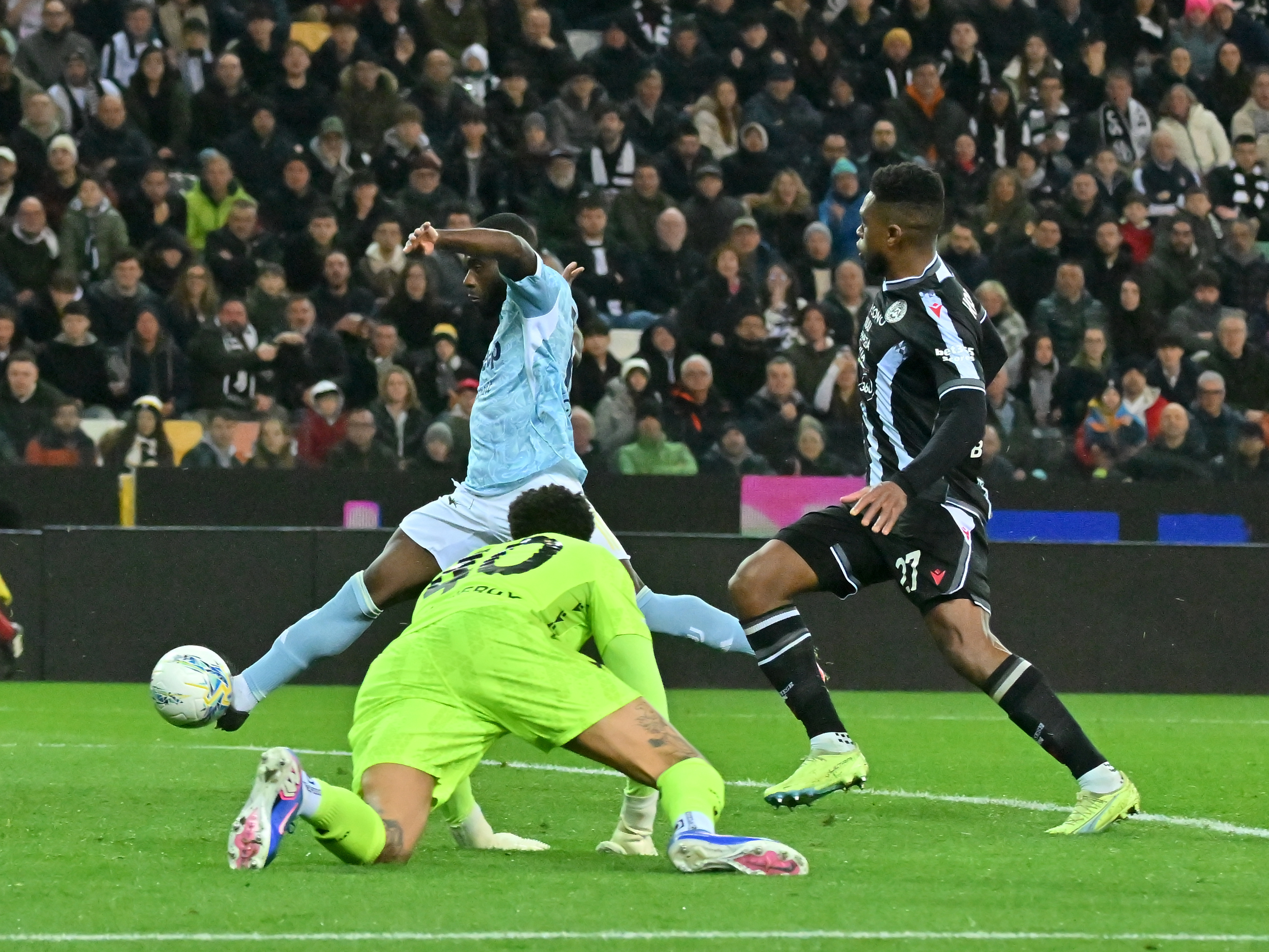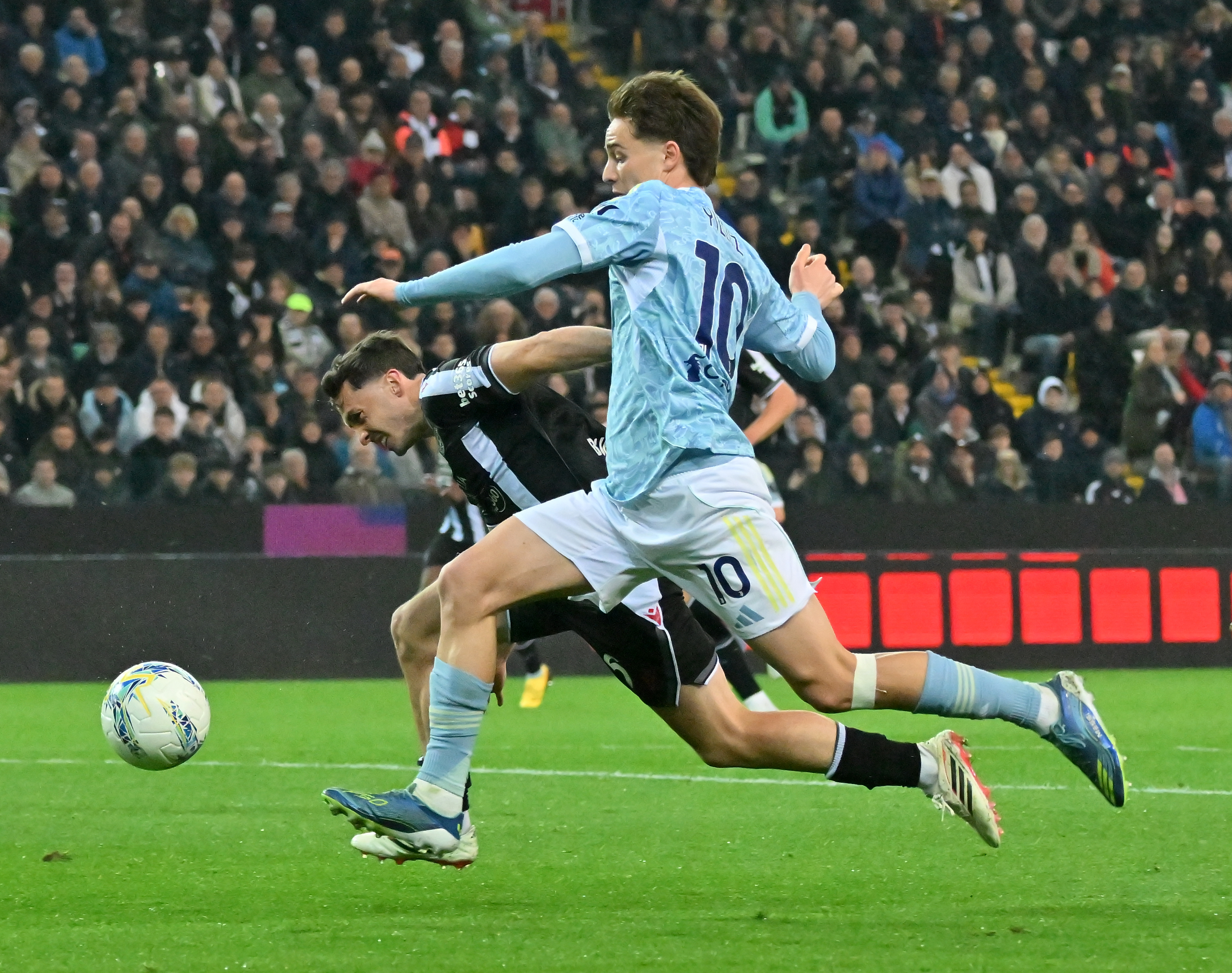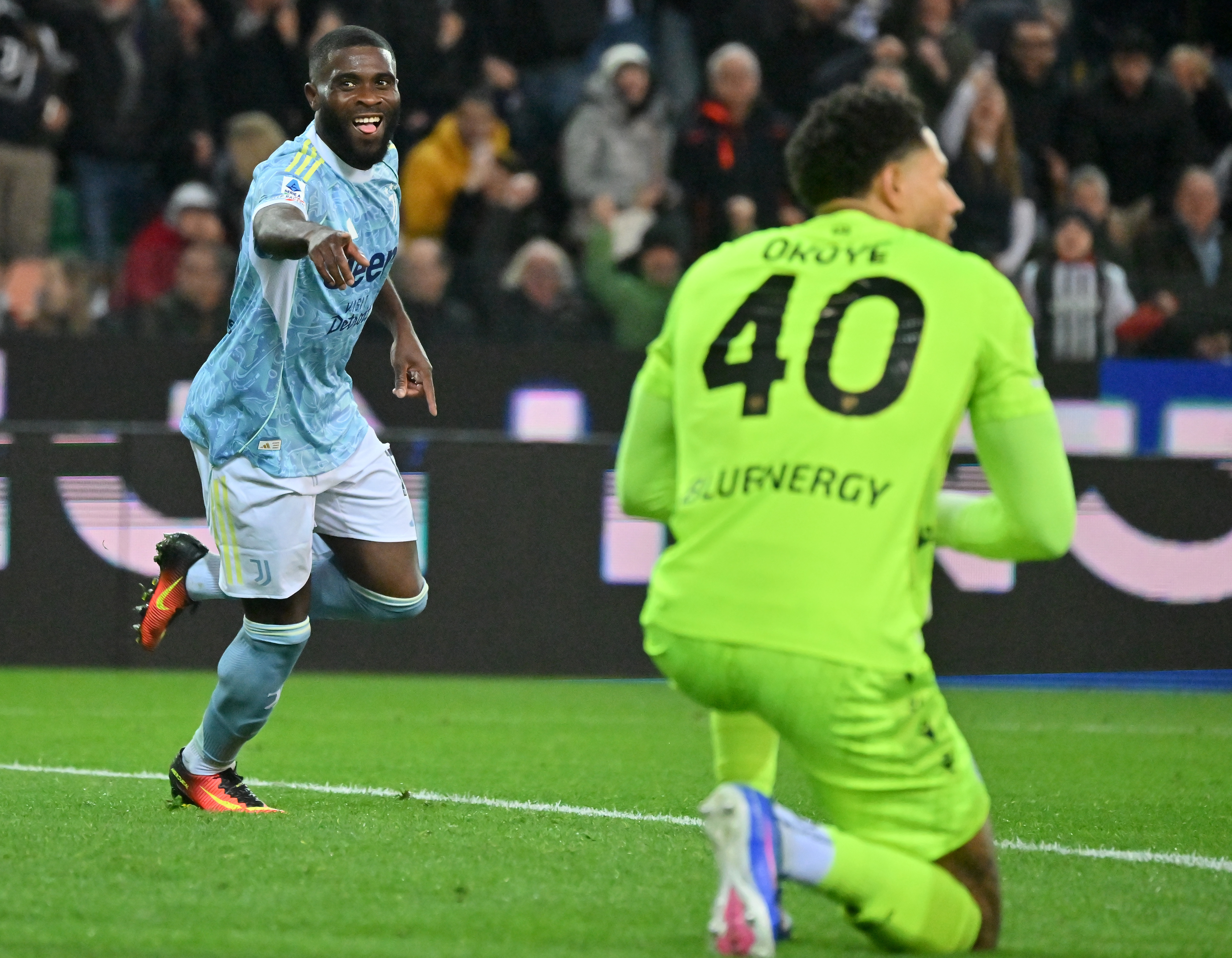 3月14日,尤文图斯队球员伊尔迪兹(前)与乌迪内斯队球员萨拉加在比赛中拼抢。新华社发(迭戈摄)