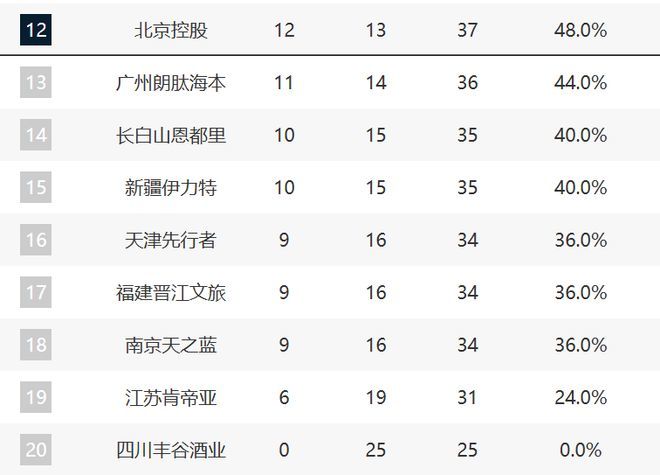 北控则自如住了第12的位置,这轮他们打败了天津,况且杰出第13的广州一个胜场。刻下广州一经两连败了,他们要握紧点了。
