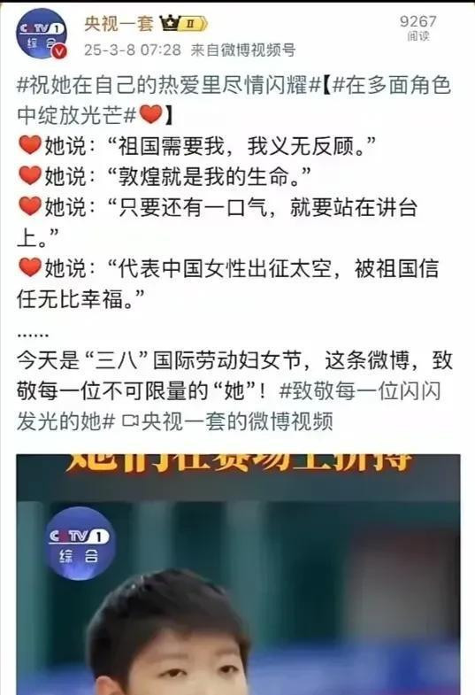 险些并吞时候,央视一套也发布了一段名为“问候每一个闪闪发光的她”的视频。